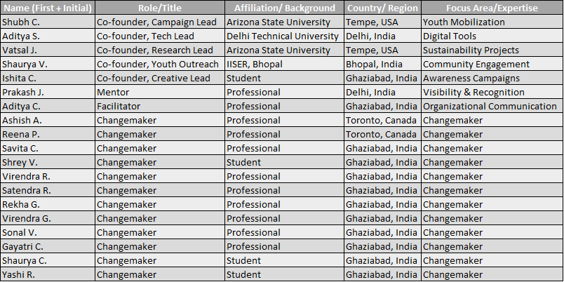 "Behind every campaign and project at GreenLungs Universal Foundation are dedicated changemakers who bring passion, innovation, and leadership to our mission. From students and professionals to community leaders, each of them plays a vital role in shaping a greener future."